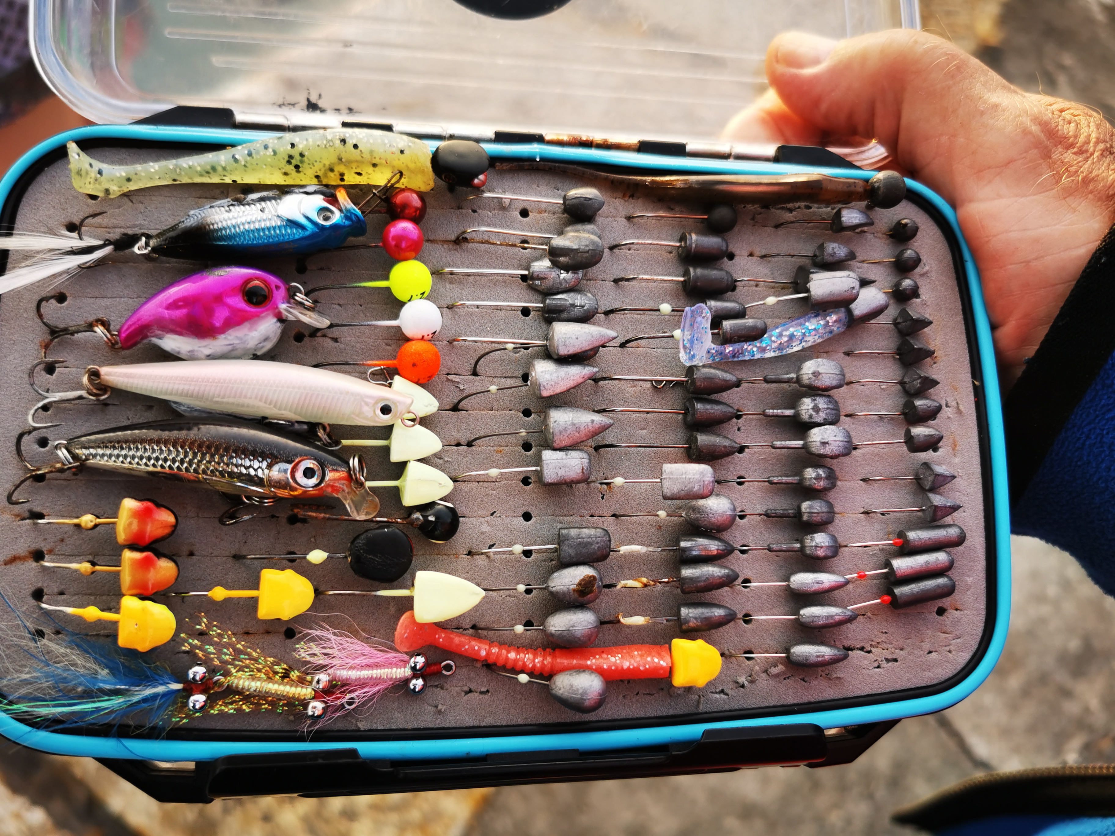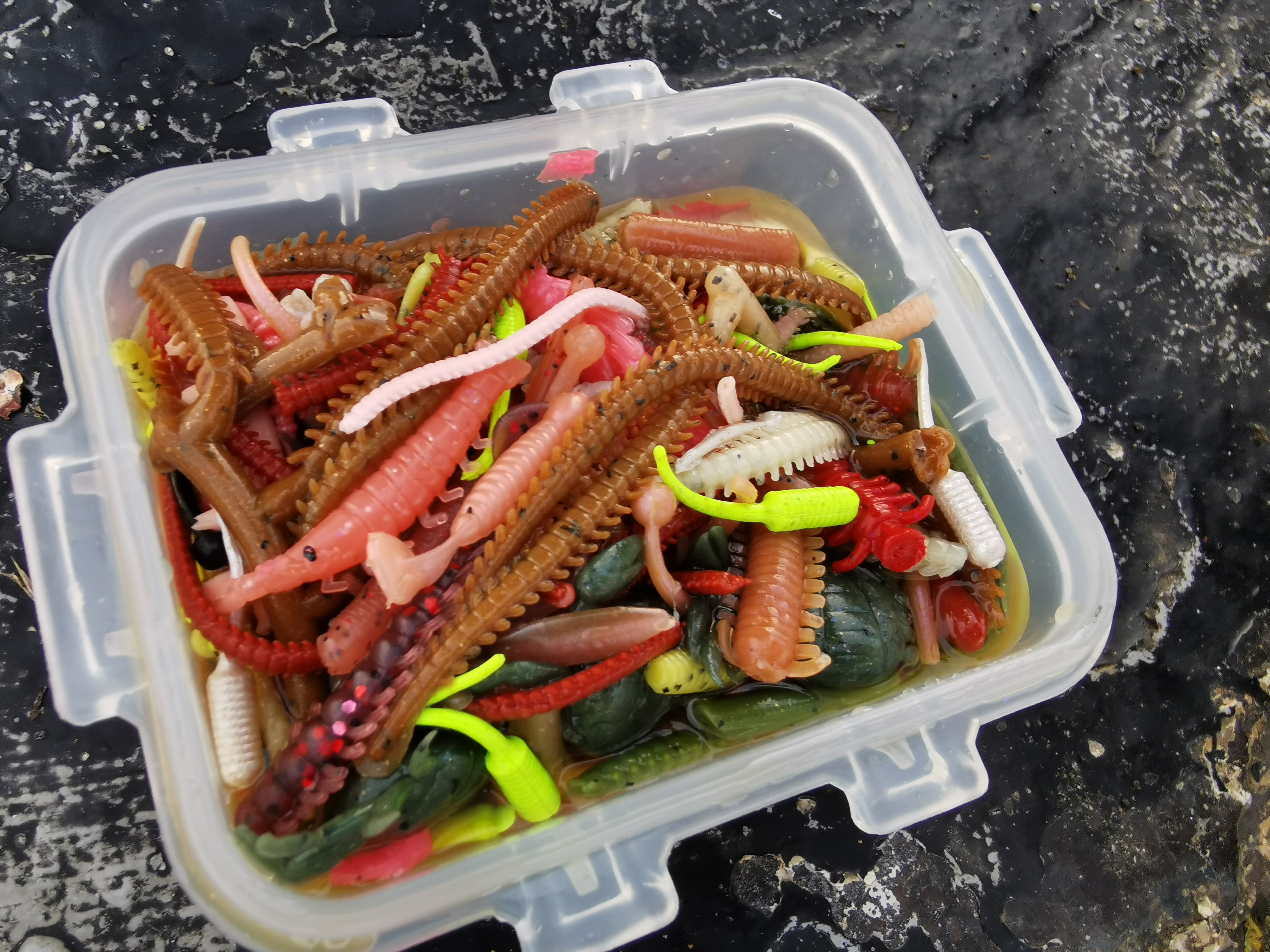 MM – I just chuck it in a tub together, all this rubbish about how you can’t mix them, I chuck everything in. It’s a mixture of Gulp, Isome, Ecogear lures.